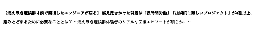 調査名称:ITエンジニアの燃え尽き手前からの回復実態調査