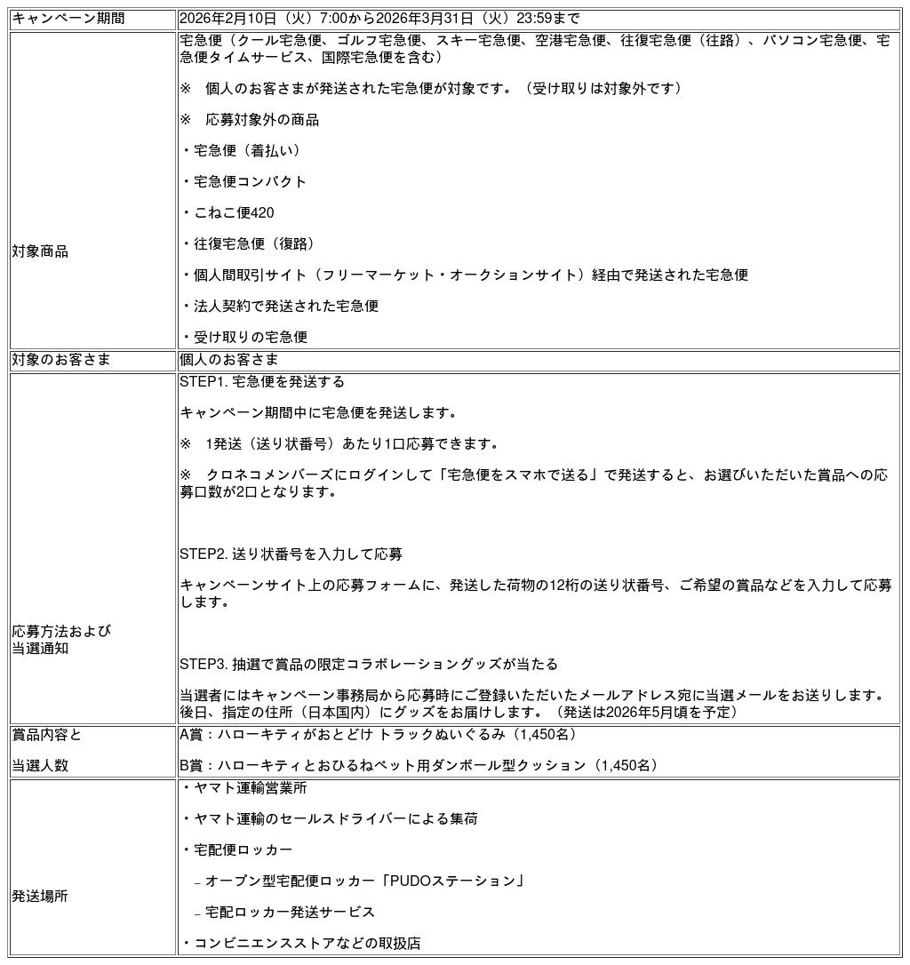 URL:https://www.kuronekoyamato.co.jp/ytc/info/info_260120_1.html