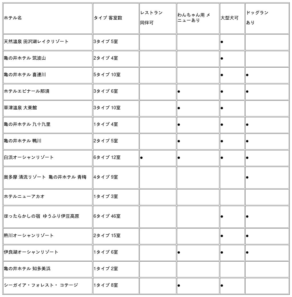 ■リブランド対象外の愛犬と泊まれるホテル一覧(2026年2月11日現在)