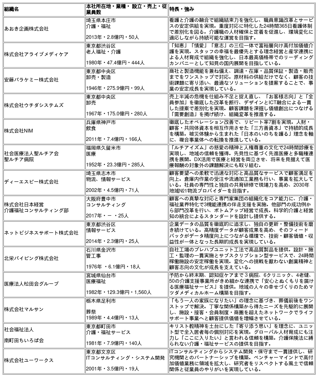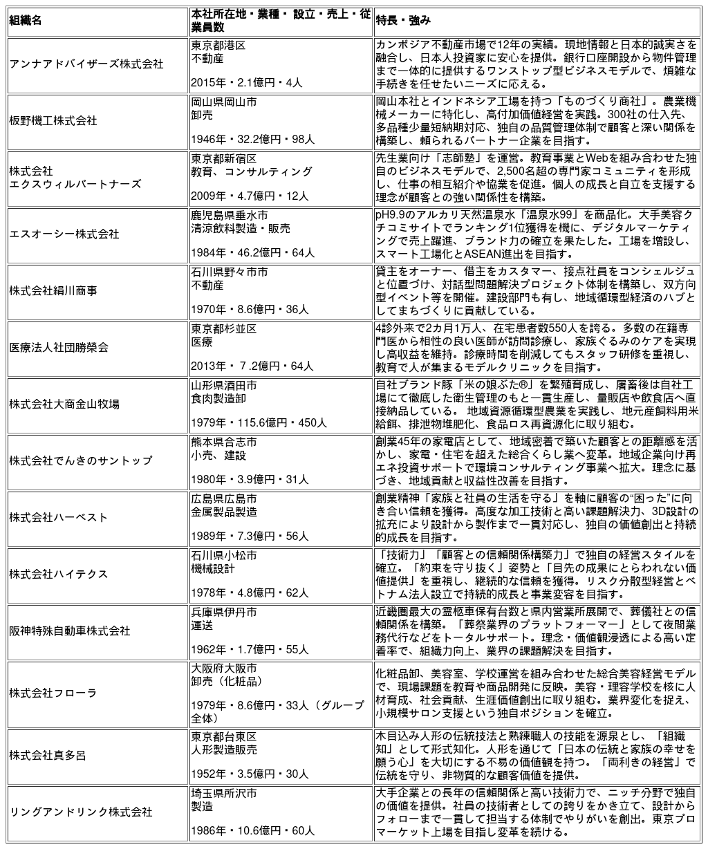 過去の「経営デザイン認証」組織一覧 (組織名50音順、組織名認証当時)