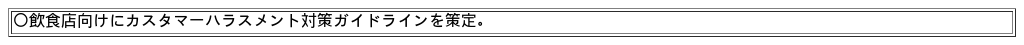近年、飲食店において、お客様や取引先からの不当・悪質なクレーム、いわゆるカスタマーハラスメントによる被害が顕在化しています。令和7年6月に労働施策総合推進法が改正され、カスタマーハラスメントを防止するため、事業主に雇用管理上必要な措置が義務付けられました。このことを踏まえ、飲食店におけるカスタマーハラスメントへの対策について検討委員会で議論を進め、カスタマーハラスメント対策ガイドラインを策定しました。