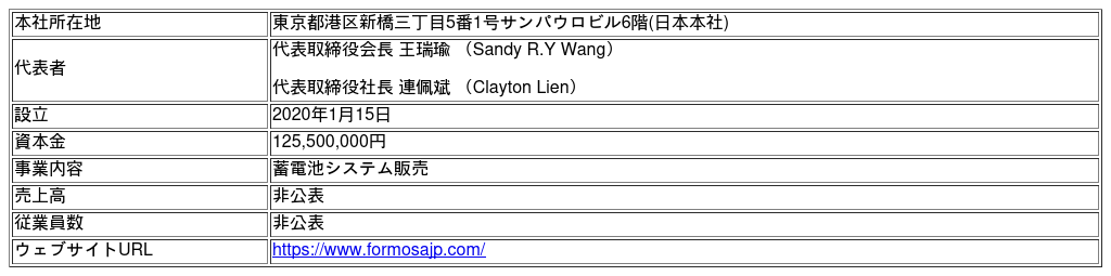 <台湾プラスチックジャパンニューエナジー株式会社>