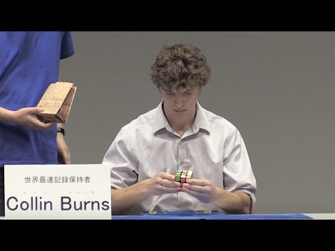 立体パズル「ルービックキューブ」の世界最速記録(10日現在)を持つ米国在住の16歳、コリン・バーンズさんが8月29日、東京都内で開催中の「ルービックキューブデー2015」のイベントに登場した。同パズルの2007年の世界大会チャンピオンの中島悠さん、09年の4×4×4部門チャンピオンの大村周平さんとのデモンストレーションマッチで、その腕前を披露し、会場に集まった観客を喜ばせた。