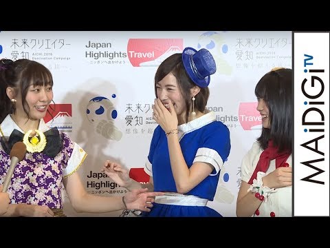 アイドルグループ「SKE48」の松井珠理奈さんと須田亜香里さん、小畑優奈さんが10月3日、東京都内で行われた愛知県の魅力をPRするイベント「推しスポ!神スポ!決定戦」に出席。松井さんは「未来クリエイター愛知のロボット」、須田さんは「徳川家康」、小畑さんは「小倉トースト」をイメージした衣装で登場し、愛知県のオススメスポットなどプレゼンした。
