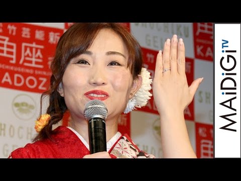 お相手の37歳の一般男性は「ものまね番組のスタッフの方。テレビの制作会社の方、いろいろアドバイスいただく関係だった。熱心に教えていただくなかで恋が芽生えた」という。プロポーズの言葉を聞かれると、「『一度しか言わないよ、俺と結婚しろ』って(言われた)」といい、サプライズで仮の指輪が入った米国の高級宝飾ブランド「ティファニー」の箱を差し出されたと明かした。その状況を「水色のあの箱! ティファニーですよ! キャー、イヤー!」と興奮しながら説明し、「うれしくて、泣き崩れました。号泣ですね、30分くらいはむせび泣いた」と幸せそうに語った。