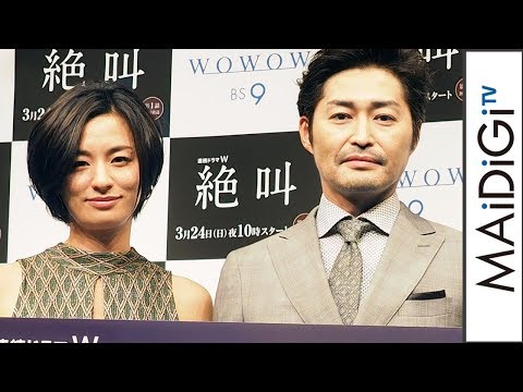 女優の尾野真千子さんが3月19日、東京都内で行われた主演ドラマ「連続ドラマW 絶叫」の完成披露試写会に、共演の安田顕さんと登場した。