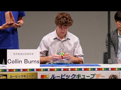 立体パズル「ルービックキューブ」の世界最速記録(10日現在)を持つ米国在住の16歳、コリン・バーンズさんが8月29日、東京都内で開催中の「ルービックキューブデー2015」のイベントに登場した。同パズルの2007年の世界大会チャンピオンの中島悠さん、09年の4×4×4部門チャンピオンの大村周平さんとのデモンストレーションマッチで、その腕前を披露し、会場に集まった観客を喜ばせた。