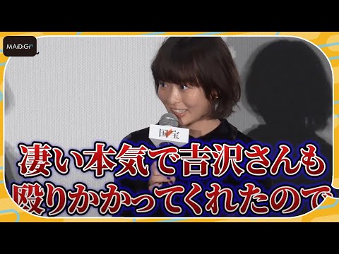 俳優の吉沢亮さんの主演映画「国宝」(李相日監督)の初日舞台あいさつが6月6日、東京都内で行われ、吉沢さんや共演の森七菜さんらが登壇した。舞台あいさつでは、森さんが「撮影前の読み合わせで、(撮影にはない)チャンバラをやった。吉沢さんが本気で殴りかかってくれた」と驚きのエピソードを披露した。