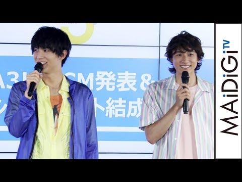 俳優の中川大志さんと小関裕太さんが8月3日、東京都内で行われたスマートフォン向けのイケメン役者育成ゲーム「A3!(エースリー)」の新CM発表会に登場。CM内でスペシャルユニット「熱組」を結成した。