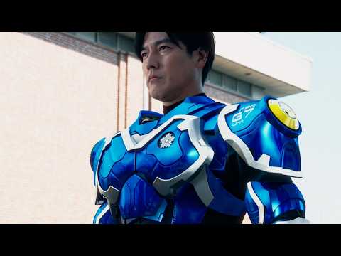 25年前のテレビシリーズ「仮⾯ライダーアギト」では、専⽤⾞輛「Gトレーラー」中で⼿動での装着であった「G3」「G3-X」から進化を遂げ、ドローンが各パーツを運び⾃動で装着が進められていく。⾜、胴体、腕、そして顔から頭部までの全⾝が覆われ、Gユニットらしい⻘⾊をベースに⻩⾊のドローンが組み合わさった新システムでたたずむ仮⾯ライダーG7。本作で初登場する最新の武器である「GZ-10 オロチ」の⼑⾝が⾃動で伸びる瞬間も収められている。